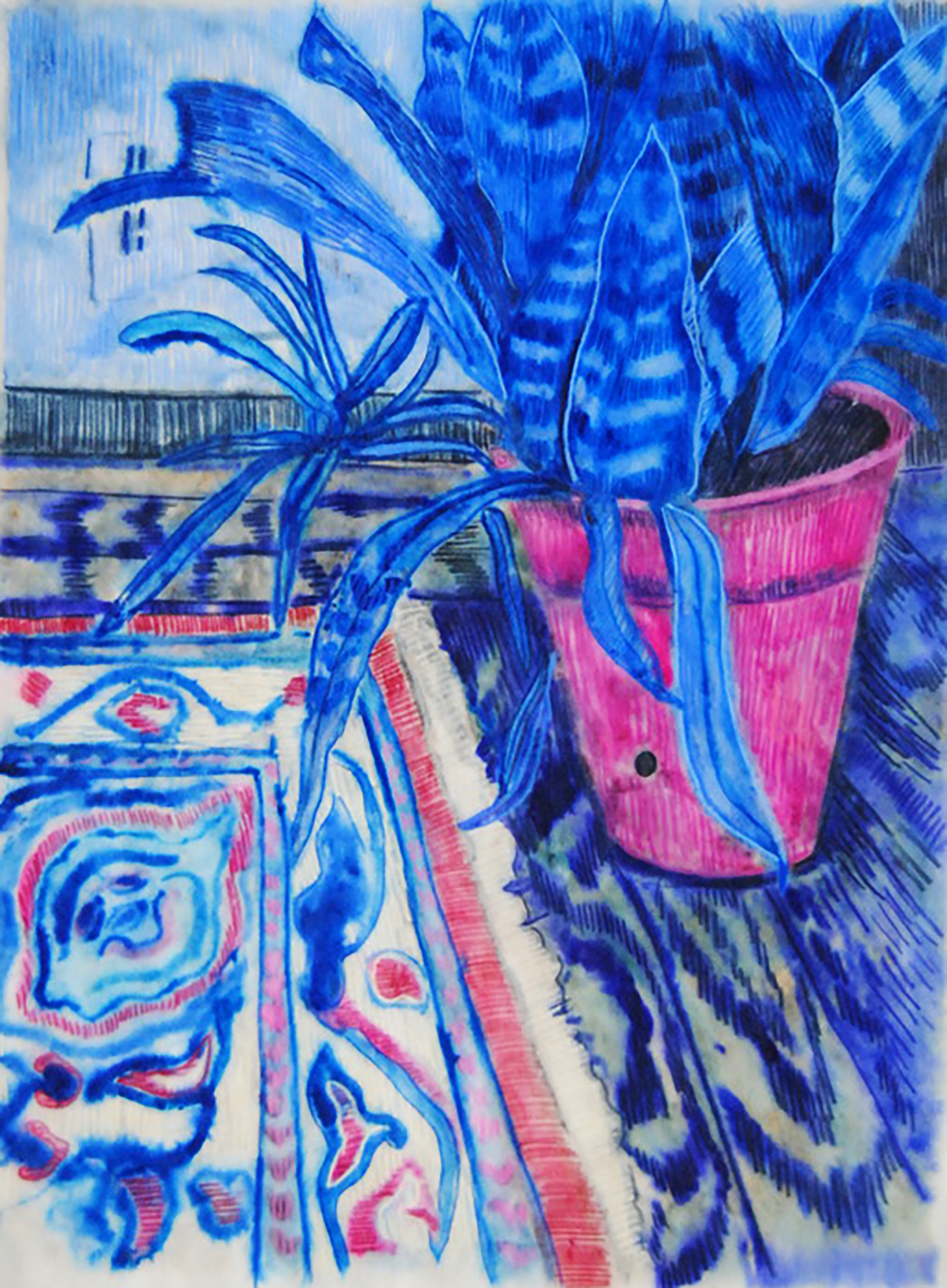Changes (Night Garden), 2021, watercolour monotype and colouring pencil on Japanese paper, 12 3/4″ x 17 1/4″