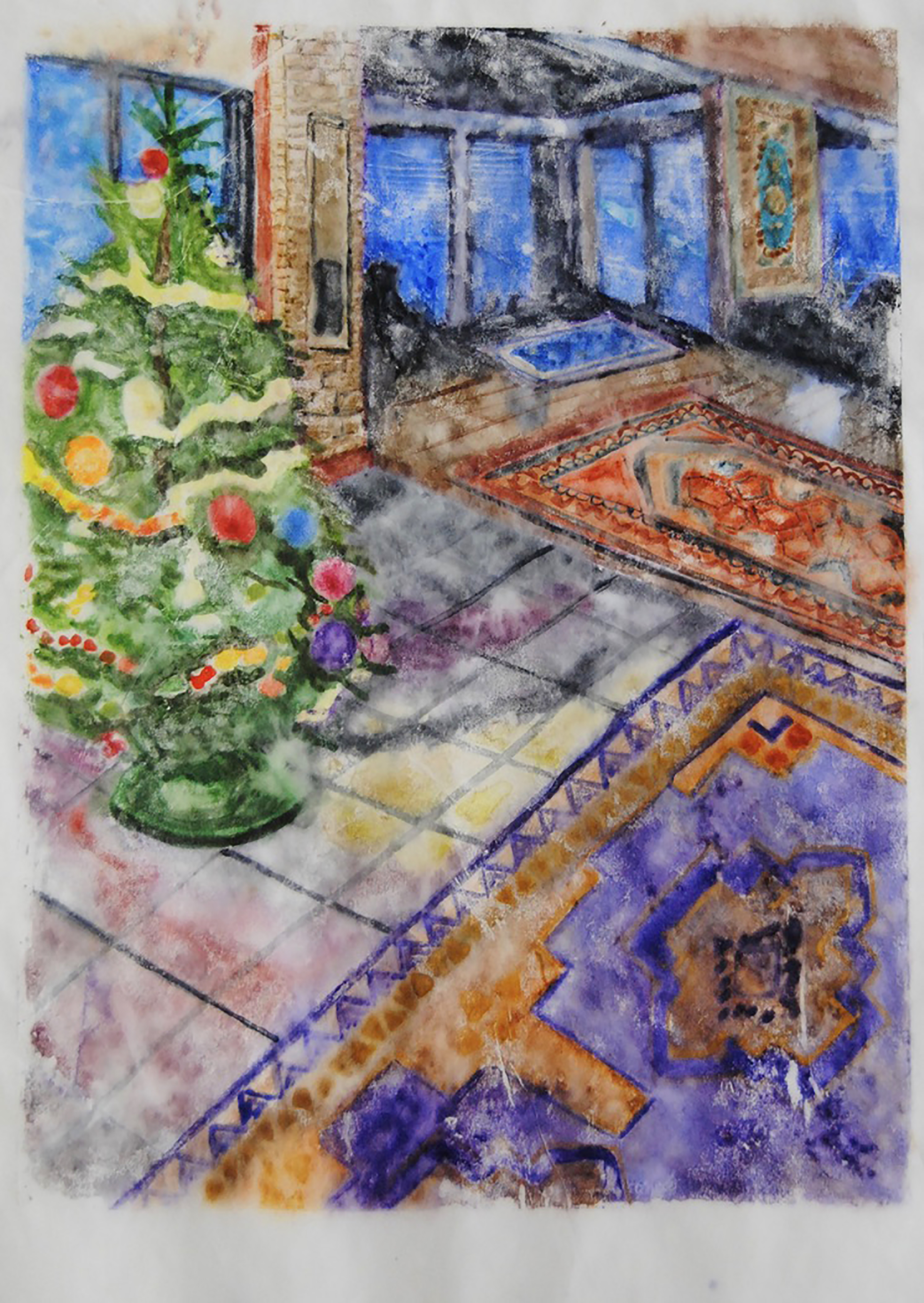 Delaying The Inevitable, 2021, watercolour monotype on Japanese paper, 13″x18″