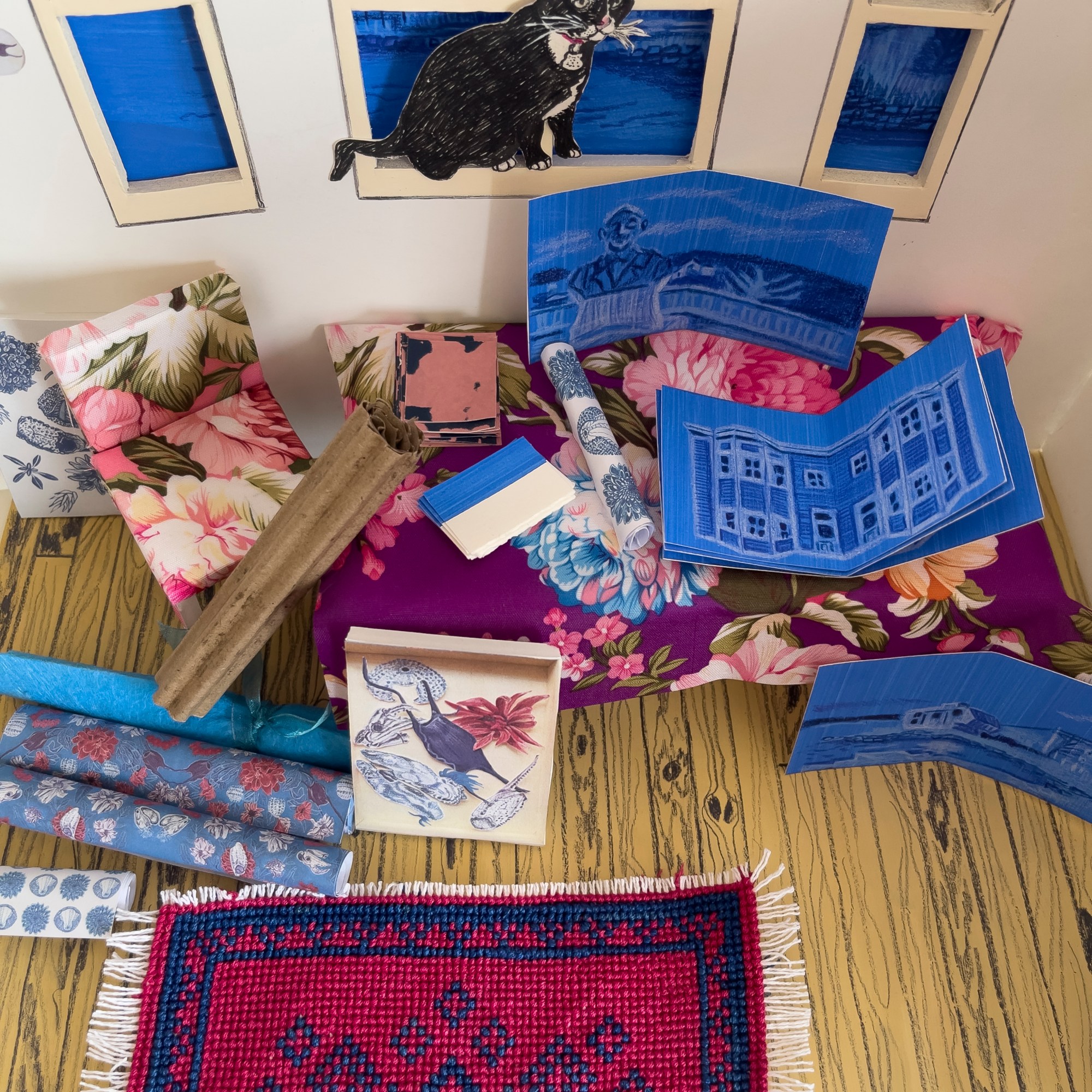 Continuing on the themes of A Year, A Garden, A Feeling (COVID19 Diary) and Three Years, Two Gardens, One Feeling, I created this diorama during my May 2024 residency at Union House Arts in Port Union, NL. Inspired by patterns, beach detritus, and spring flowers, I created a series of small drawings and paintings, some of which are included in this miniature re-imagination of Union House. Also included within the diorama is my residency mate Christeen Francis’ cat, Stevee, who was my constant studio companion as I drew and painted.