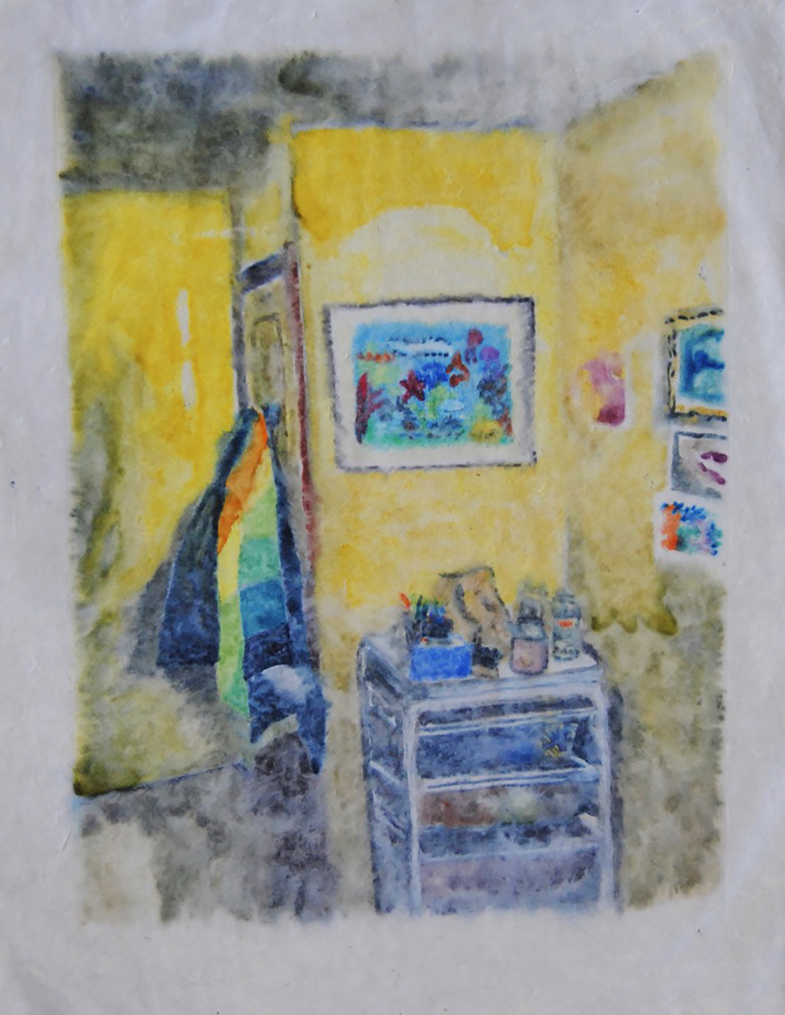 For the First Time in Days, 2020, watercolour monotype on Nepalese paper, 14″ x 18.5″