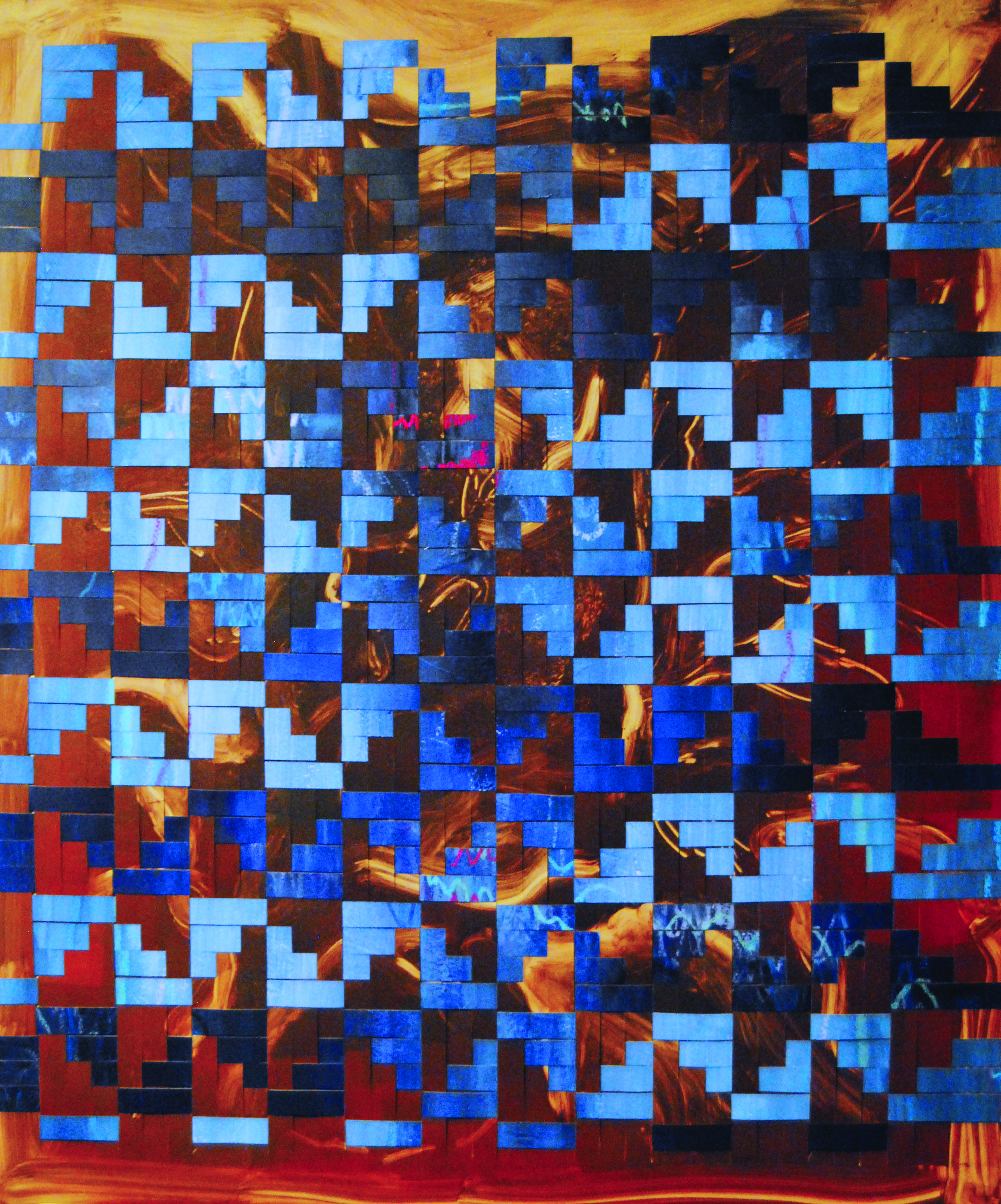 Hearth (Deep Breaths), 2020, woven paper, oil-based ink on Arches, with acrylic and oil stick on Arches, 23.5″ x 20″