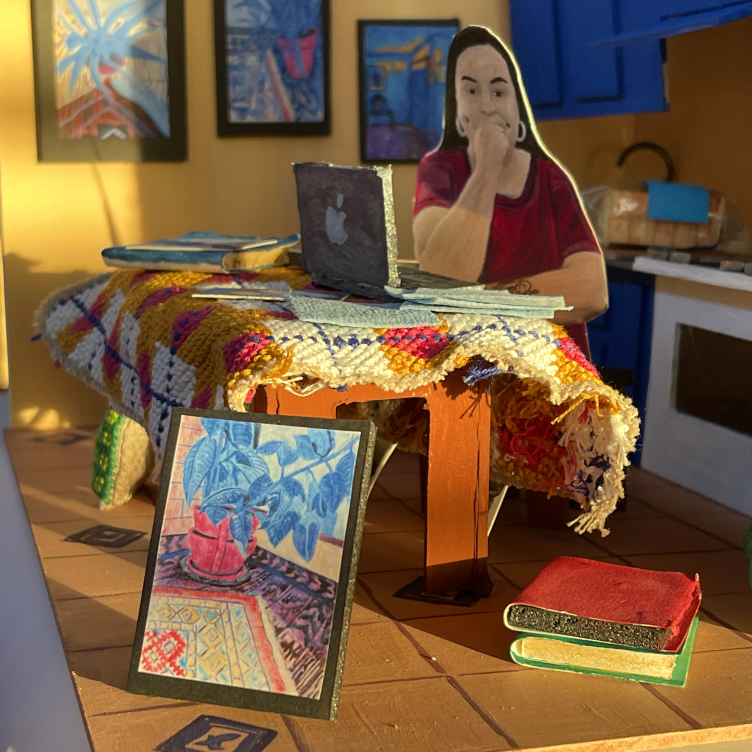 Transitions: Unmuted, 2021, paper figurine in handmade diorama. This work is part of the ArtsUNITE Unmute Virtual Artist Residency, conducted in March 2021.