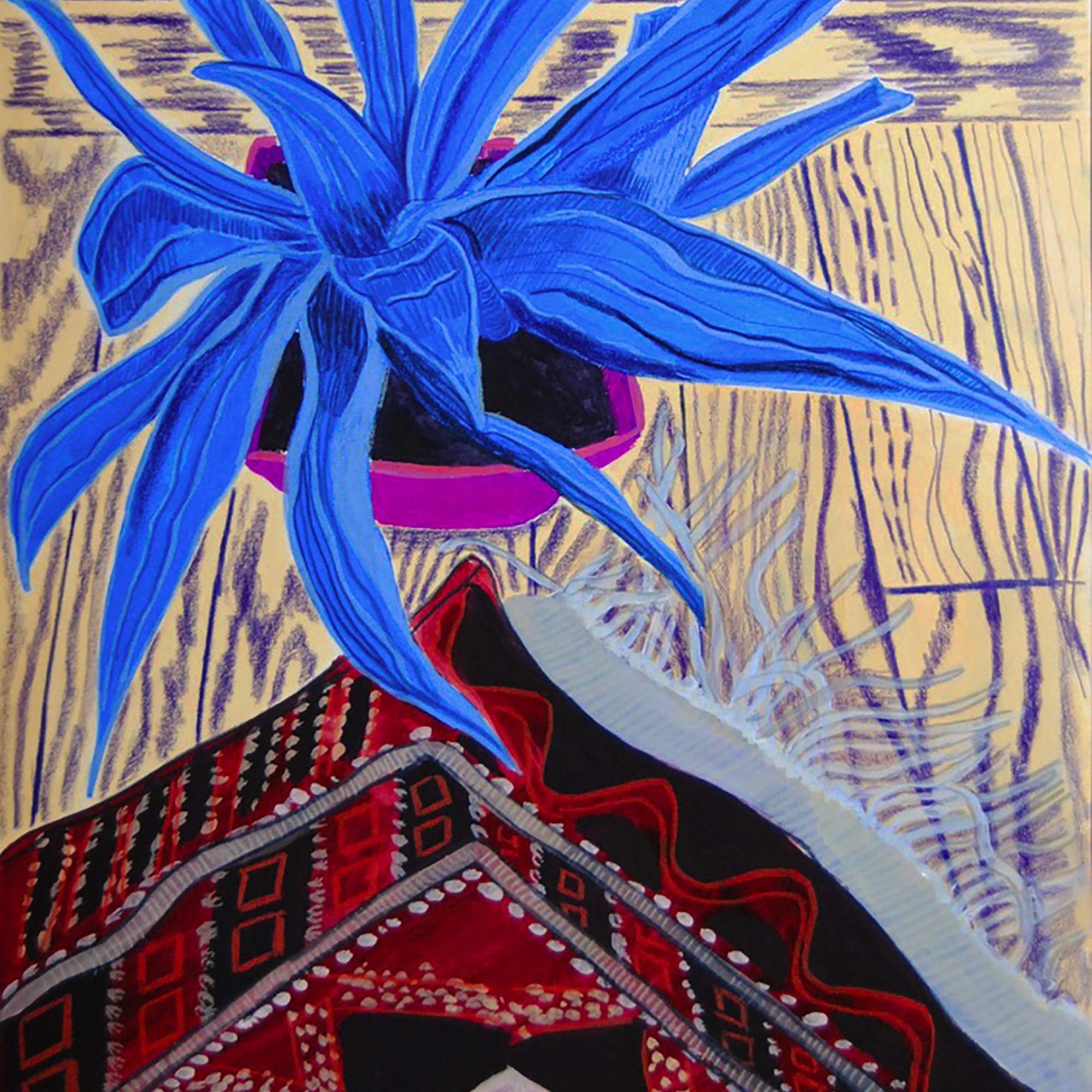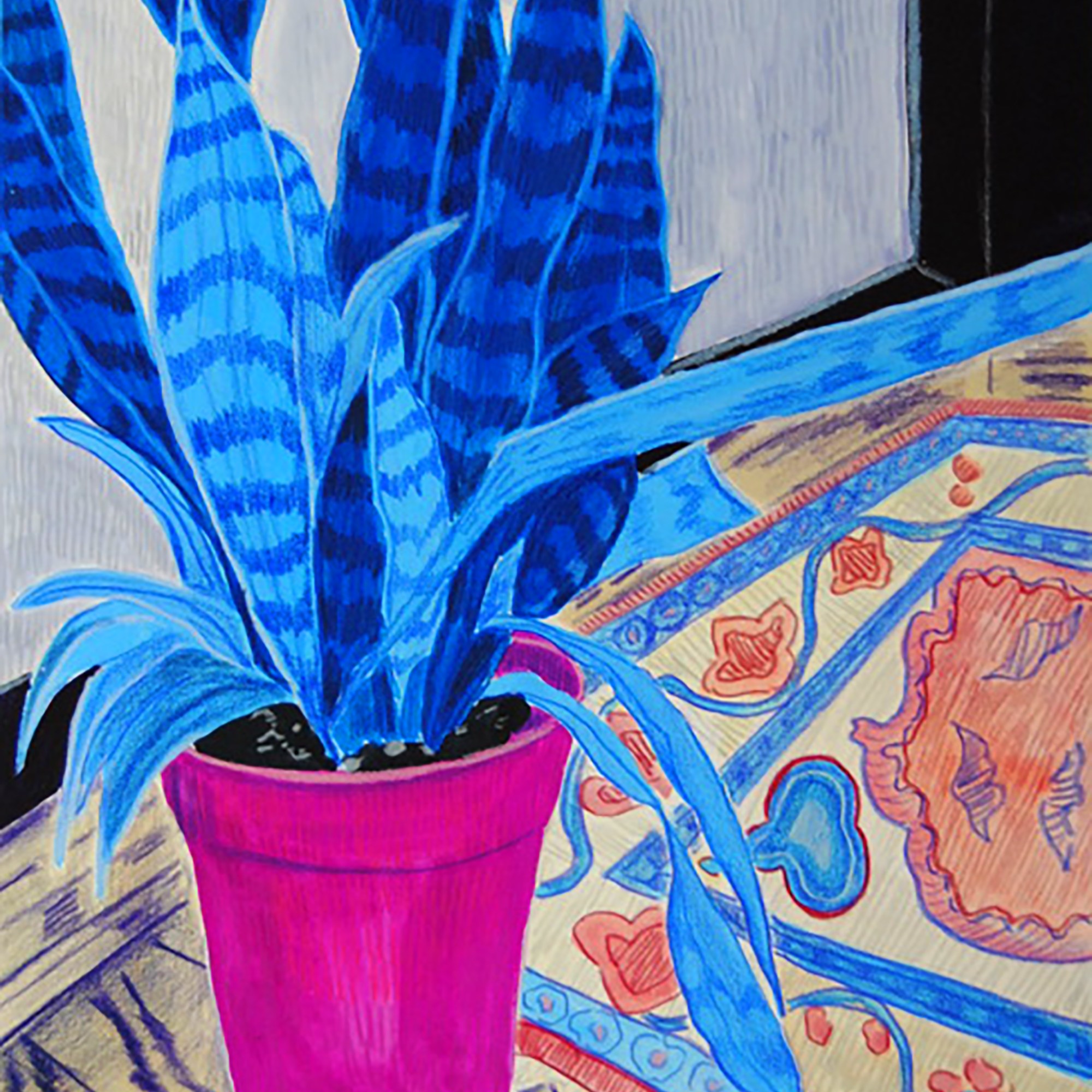 Started as a continuous pandemic diary of domestic life, this series of works captures domesticity and routine during this uncertain time, with the everyday providing the impetus for creation. Repetitive elements such as carpets, hardwood floors, windows, house plants, and external paths are integral to this reality of isolation, yet there is also togetherness, community, and belonging. The reality of the pandemic and a year of confinement at home have brought these themes to the forefront of my current work. This series was made possible through the generous support of the Canada Council for the Arts.