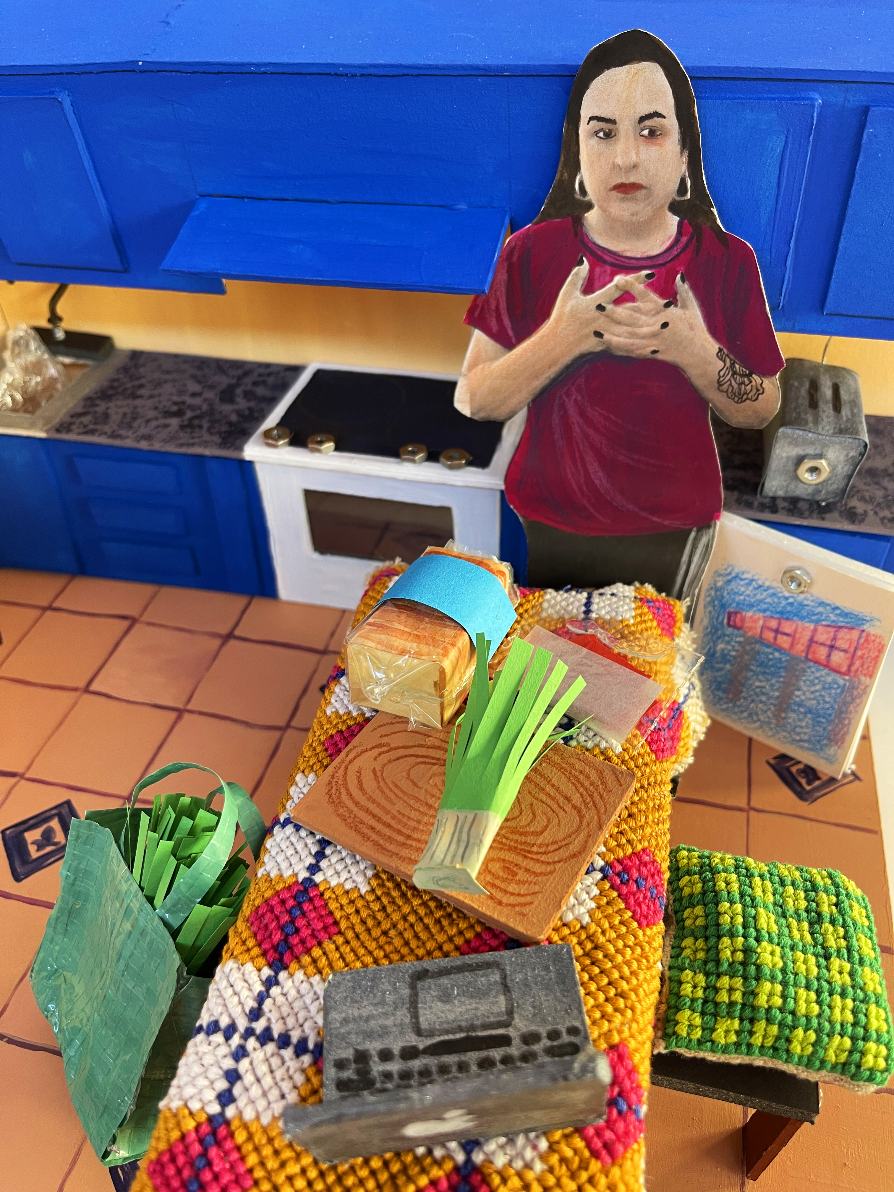 Transitions: Unmuted, 2021, paper figurine in handmade diorama. This work is part of the ArtsUNITE Unmute Virtual Artist Residency, conducted in March 2021.