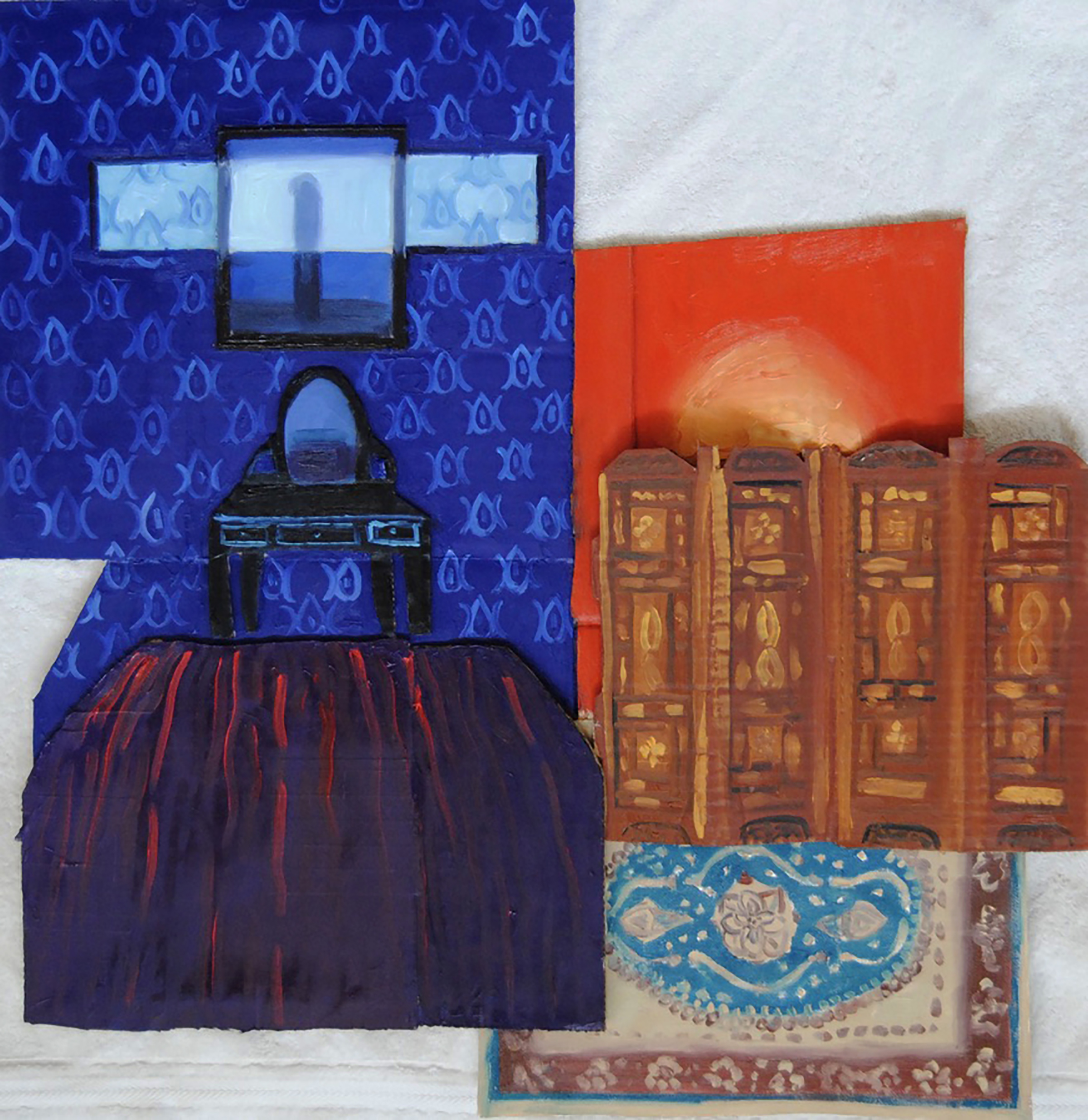 Two Rooms (Night Study), 2021, oil on mixed media collage panel